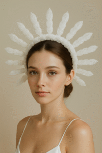 Zamansız zarafeti çağdaş detaylarla buluşturan bu koleksiyonda, modern gelinler için sade ve modern çizgilerle tasarlanmış saç aksesuarları yer alıyor.